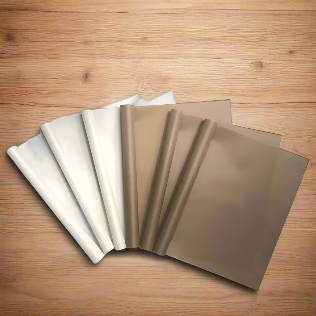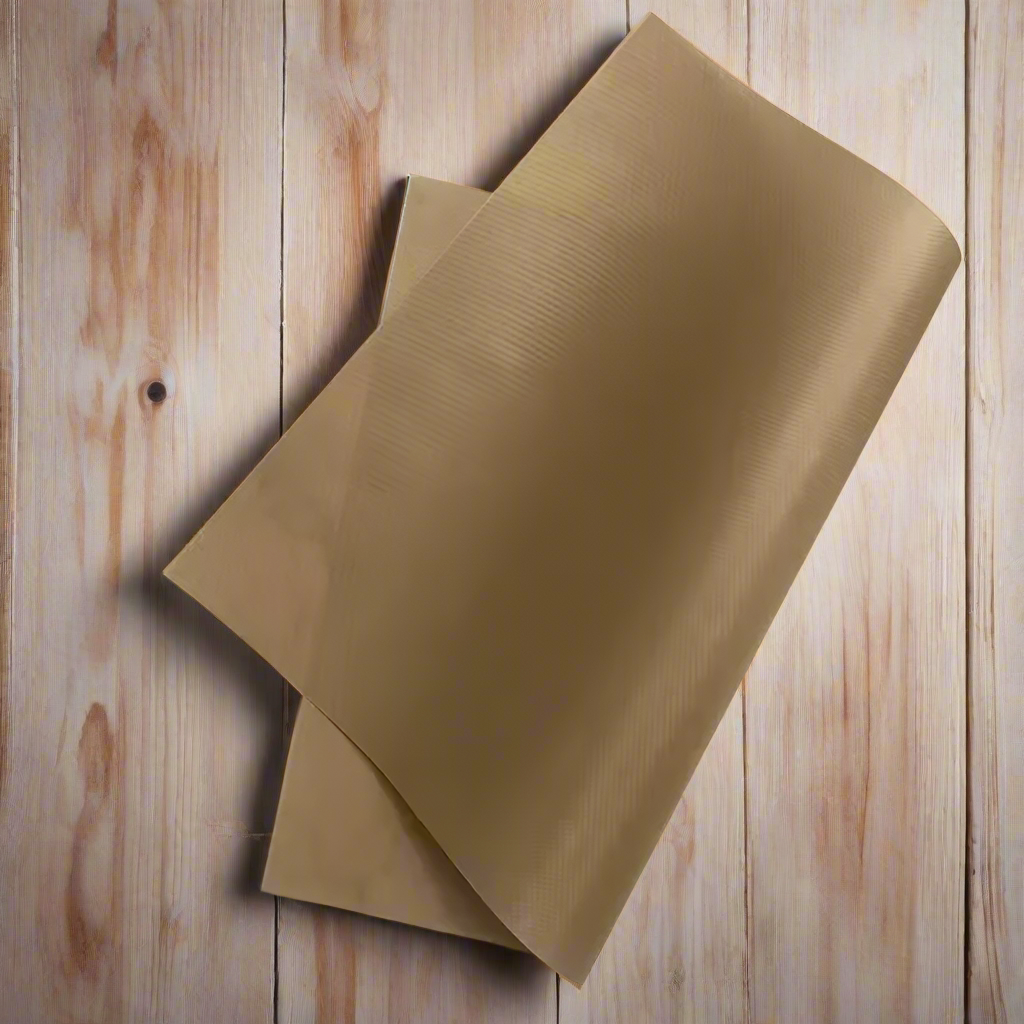 Wiederverwendbare Dauerbackfolie aus hitzebeständigem Glasfaser Material mit Antihaft-Oberfläche in Braun.